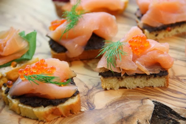 Sul ogni fetta mettete: l'insalata,il salmone, il caviale e il formaggio. Decorate e servite subito.