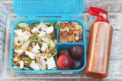 Il lunch box di martedì: insalata composta da lattughino, pera, camembert di bufala e noci.
