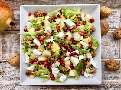 Martedì abbiamo mangiato l’insalata di cui mi sono innamorata: lattughino con pera, melagrana, avocado, noci e ricotta di pecora. La ricetta è qui. Per la merenda avevamo l’estratto di frutta e verdura stagionale. Le ricette sono qui.