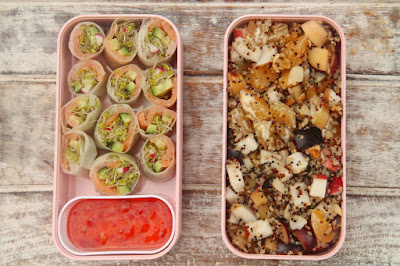 Per il pranzo di venerdì abbiamo mangiato involtini di carta di riso con salmone affumicato, germogli e verdure crude. La ricetta è qui. Accompagna la salsa agrodolce.