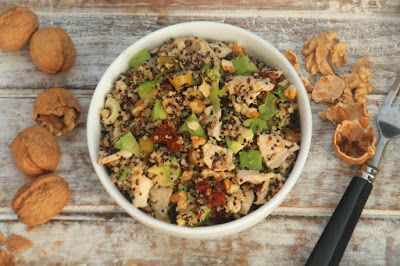 Giovedì abbiamo mangiato un’insalata di quinoa con pollo, avocado e noci. La ricetta è qui.