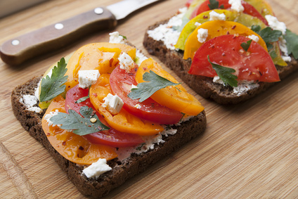 4. Pane integrale con pomodori e feta.