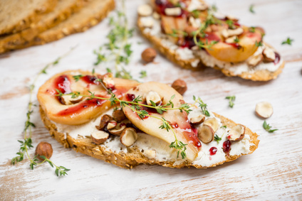 1. Pane integrale con formaggio e pera.