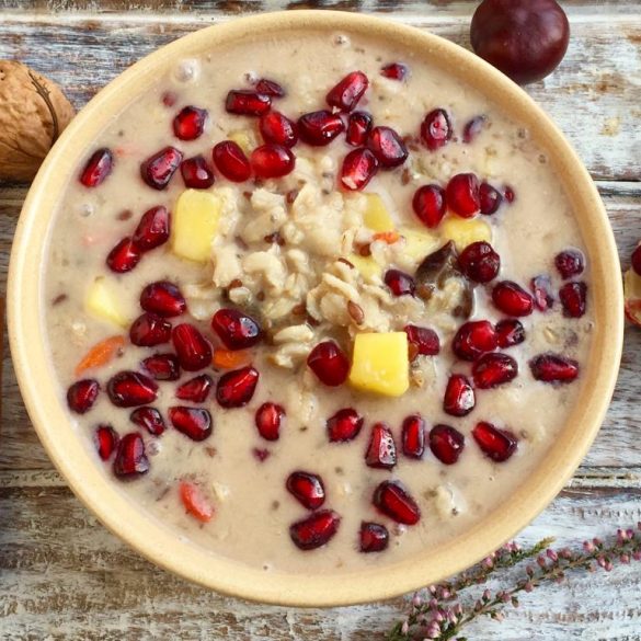 Home Basso ColesteroloRicetta porridge con mango, melagrana e frutta seccha