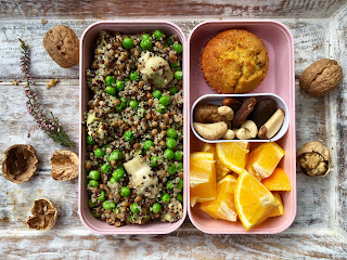 Per la merenda un muffin senza glutine (ricetta qui), un’arancia e frutta secca.