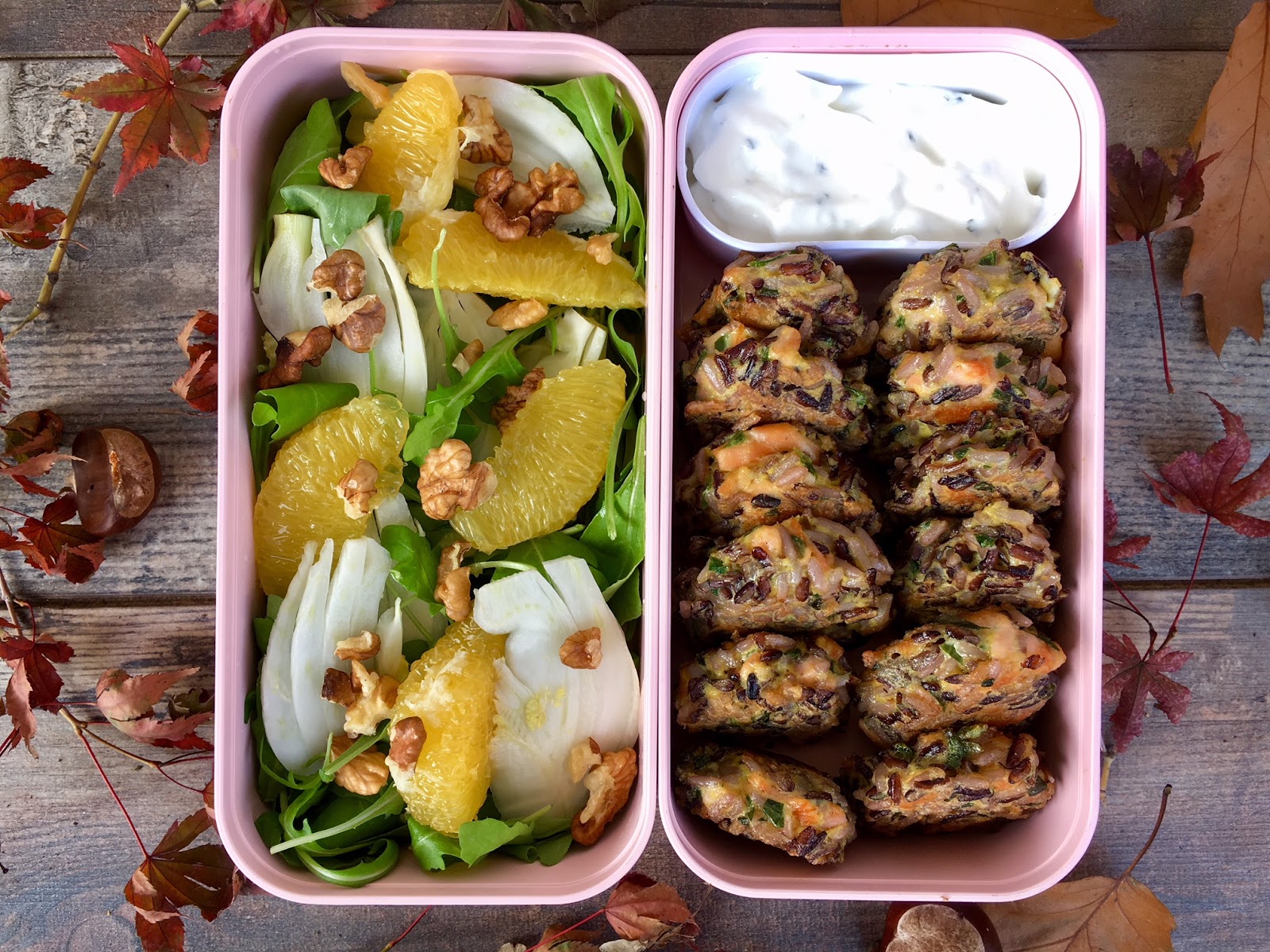 Questo giorno ho preparato le cotolette di riso rosso e basmati e salmone affumicato. La ricetta è qui.