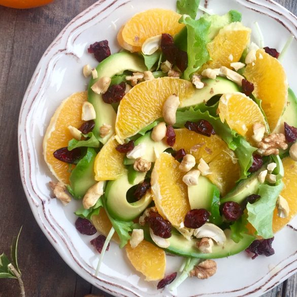 Insalata invernale di arance e avocado con frutta secca. Un’insalata dal sapore molto buono, sfiziosa ma allo stesso tempo semplice.