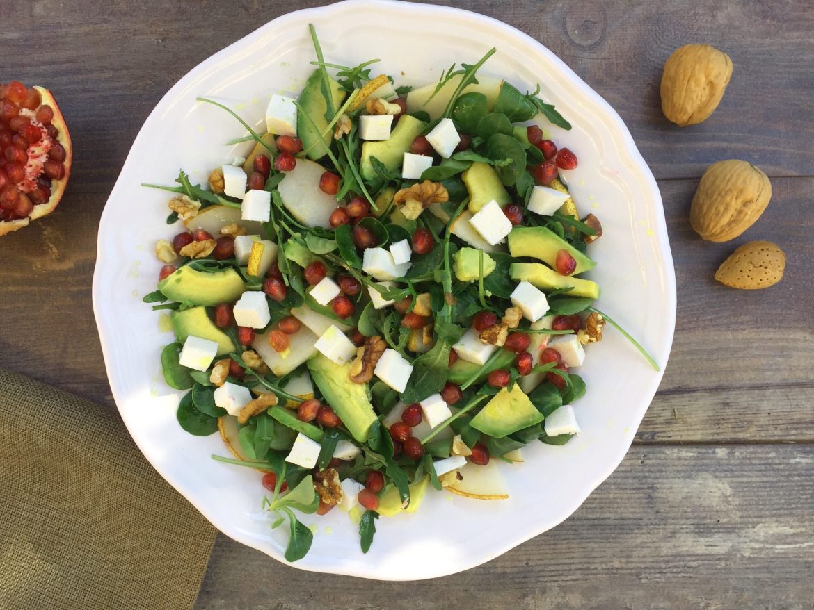 Insalata di avocado, pera e ricotta salata