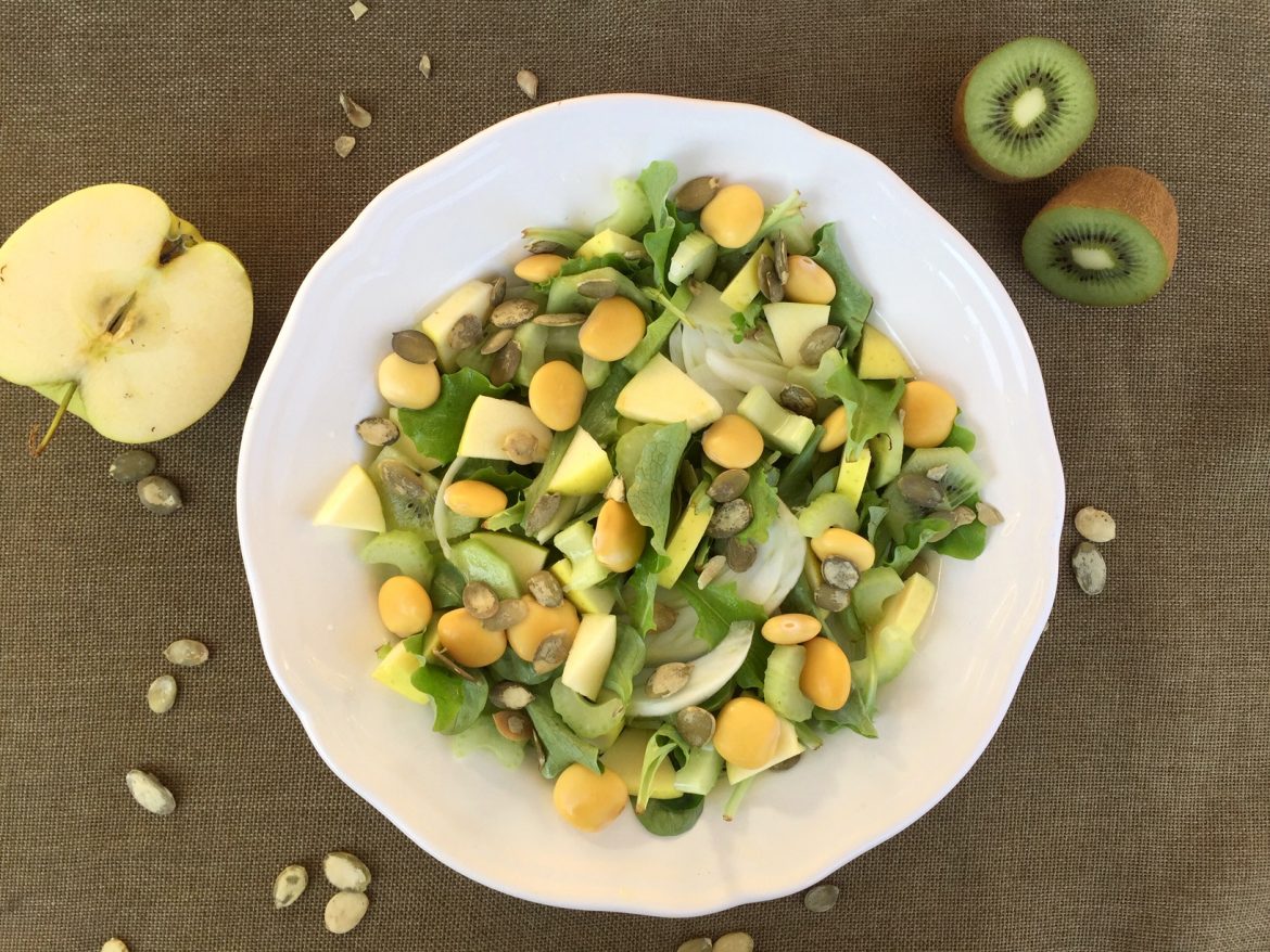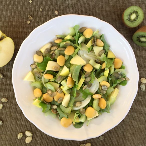 Insalata invernale chiamata da me “detox”. Perché “detox”? Perché è composta dagli ingredienti che aiutano depurare il corpo: le verdure e le foglie verdi sono ricche di fibre e disintossicanti. I kiwi e le mele aiutano a digerire, regolarizzano il transito intestinale, il finocchio è depurativo e tonifica il fegato, il sedano ha proprietà diuretiche e i lupini sono un’ottima fonte proteica, di fibre e presentano un basso contenuto di carboidrati.