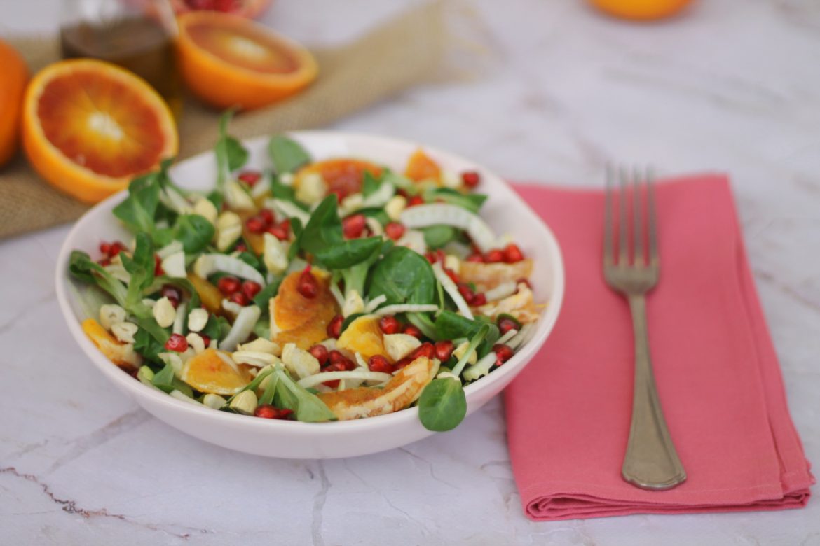 Insalata di arance e melagrana con finocchio e anacardi. Un’insalata dal sapore molto buono, sfiziosa ma allo stesso tempo semplice.
