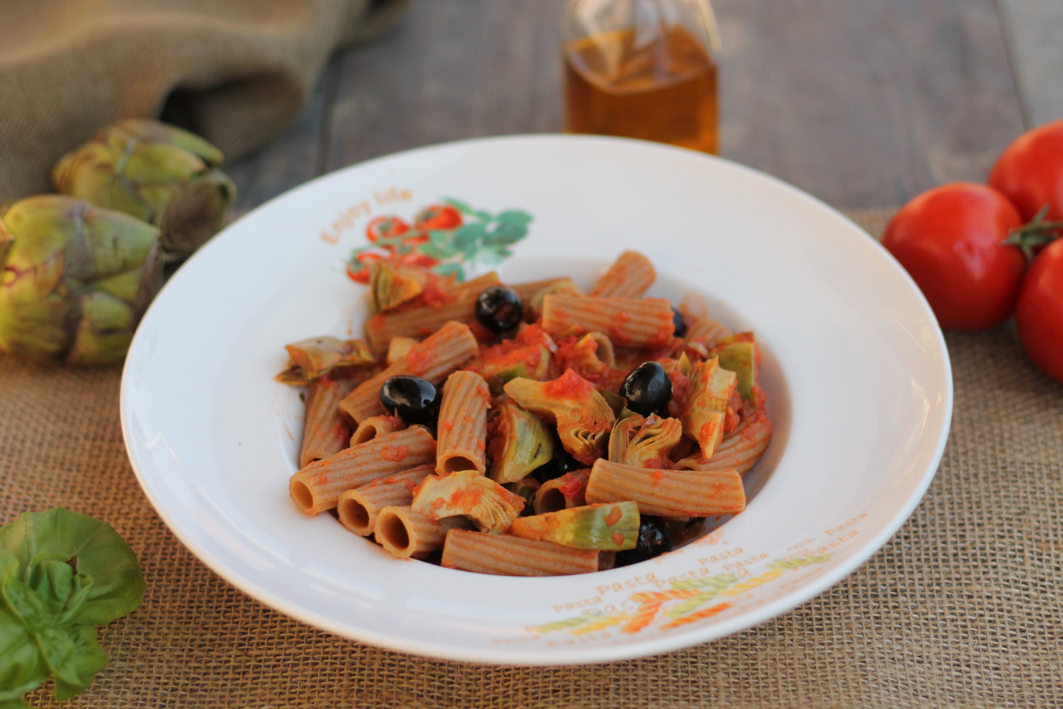 La pasta integrale con carciofi e pomodori è un primo piatto gustoso, sano, sostanzioso e semplice da realizzare. I carciofi hanno tante proprietà, da quelle depurative, dimagranti ai benefici per il fegato e colesterolo. E una verdura che vale la pena mangiare spesso. Altre ricette con i carciofi le potete trovare qui.