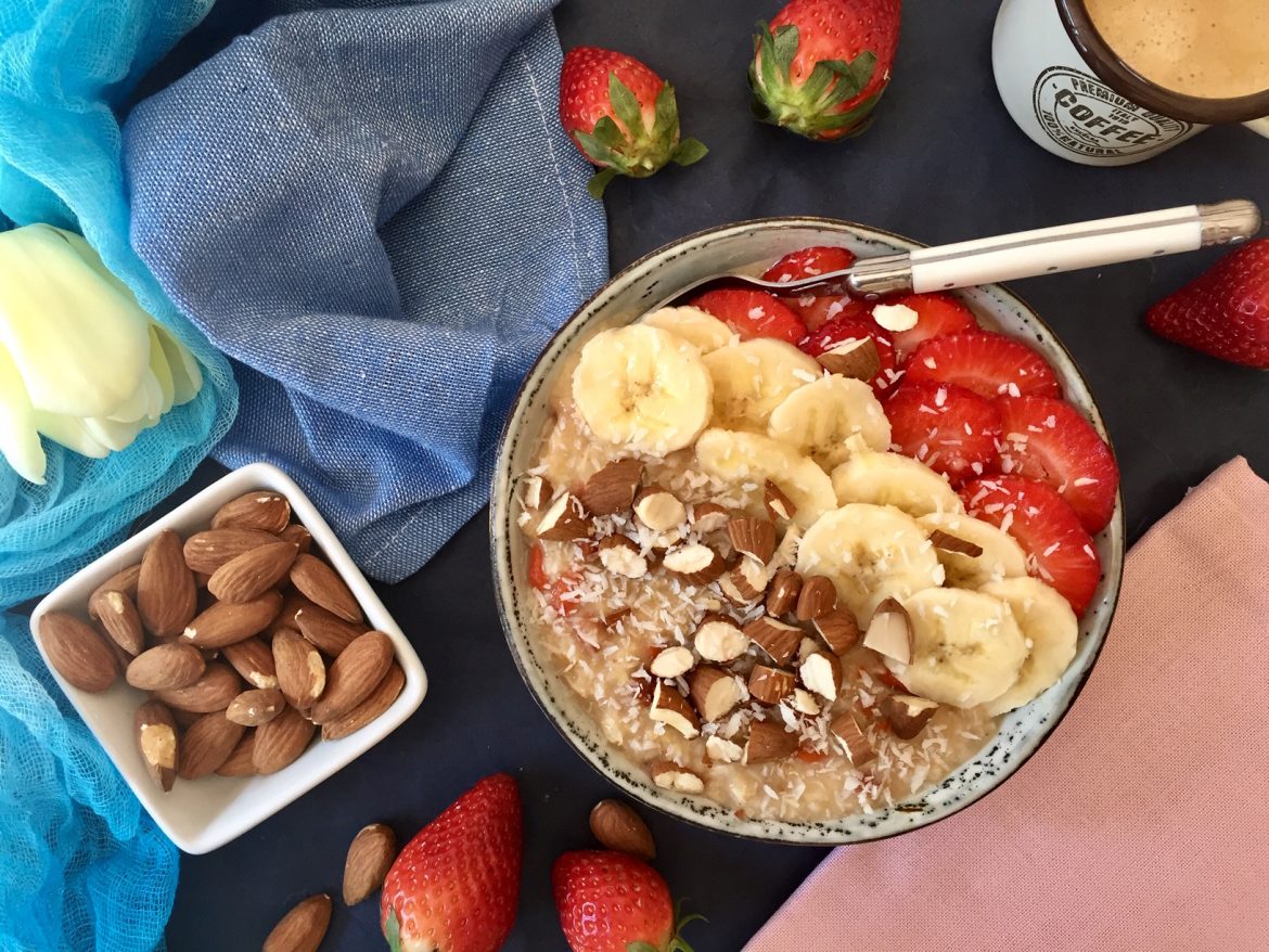 Il porridge con cocco e fragole è una proposta per una colazione sana, nutriente e molto buona. I fiocchi di cocco e le fragole sono una combinazione golosa. Il porridge inoltre è un alimento che riempie lo stomaco e dona una sensazione di sazietà a lungo.