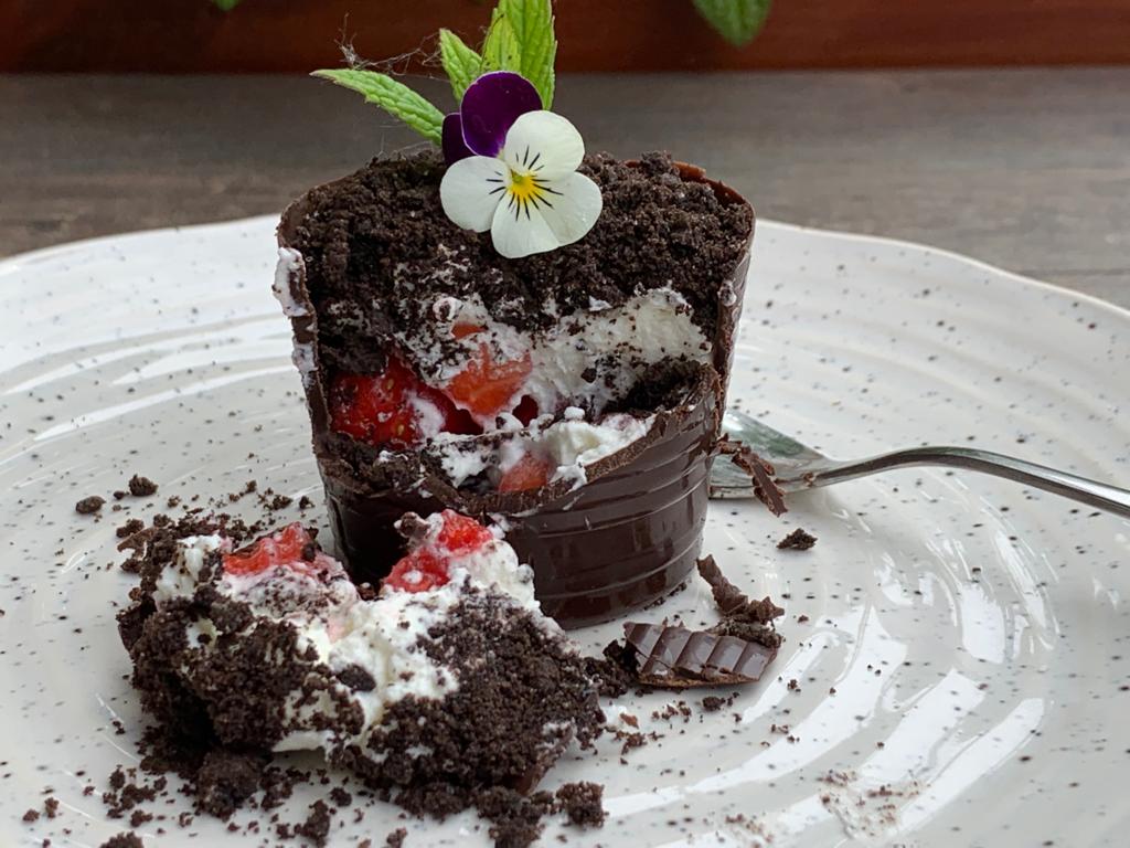 Vasetti di cioccolato ripieni di panna montata e fragole, cosparsi di polvere di biscotti. Questa ricetta non è per niente dietetica, ma in tanti me l’hanno chiesta e per feste speciali come la festa della mamma si può pensare di fare qualche piccolo sgarro :=) . I vasetti li potete anche farcire con yogurt greco o yogurt alla vaniglia, aggiungendo frutti di bosco per ottenere un dolce meno calorico. Per fare “la terra” nei vasetti ho utilizzato i biscotti Oreo, ma ho pure preparato la versione senza glutine usando biscotti di cioccolato senza glutine. I vasetti di cioccolato sono buonissimi, di per sé la preparazione degli ingredienti è semplice, purtroppo però la loro realizzazione è alquanto impegnativa. Di certo l’effetto finale è spettacolare!