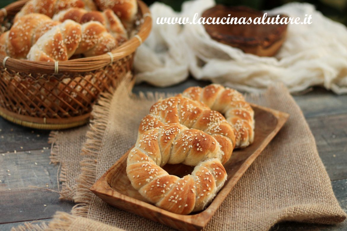 I bagel sono panini americani dalla classica forma di ciambella, ricoperti di semi di sesamo o di papavero. Sono molto gustosi, leggeri e ideali per colazione. Sono buonissimi serviti con formaggio e frutta o con la marmellata, ma anche per un pranzo veloce, farciti con salmone e formaggio o prosciutto e verdure. La ricetta originale per i bagel è piuttosto complessa e lunga perché prevede la doppia cottura. La mia proposta è una variante di quella originale: è molto semplice e più sana perché ho utilizzato la farina integrale, ma l’effetto finale è buonissimo. I bagel sono morbidi e golosi e l’unico problema è che è difficile mangiarne soltanto uno :)