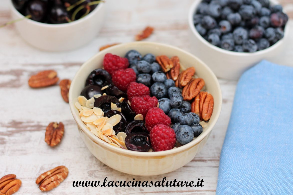 L’overnight porridge si prepara lasciando in ammollo i fiocchi di avena nello yogurt o nel latte per tutta la notte. Di mattina aggiungete soltanto la frutta, noci o semi e la vostra colazione è pronta! Guardate anche la ricetta per porridge freddo qui.