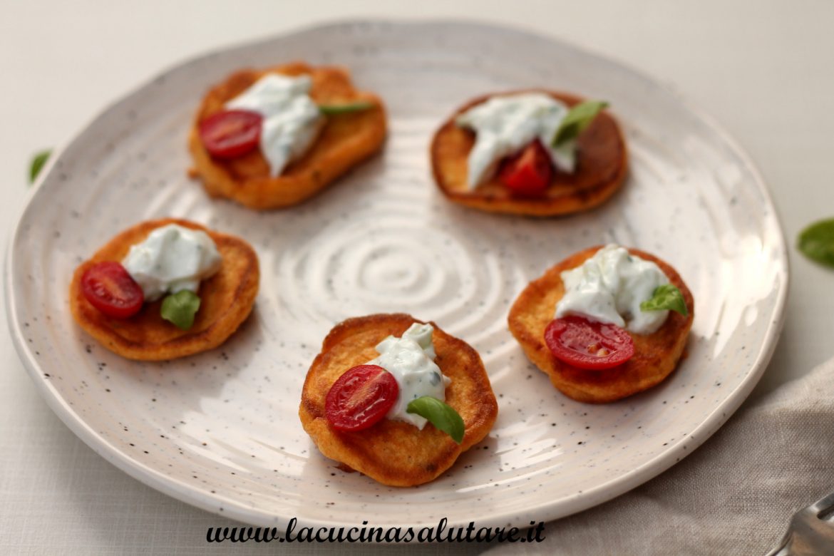 Riscaldate bene la padella antiaderente su fuoco basso con un cucchiaio di olio, versate un cucchiaio di composto e friggete su fuoco medio fino a quando non diventano rosolate. Non friggetele troppo a lungo perché possono seccarsi. Posate infine le frittatine sulla carta da cucina per assorbire l'olio.