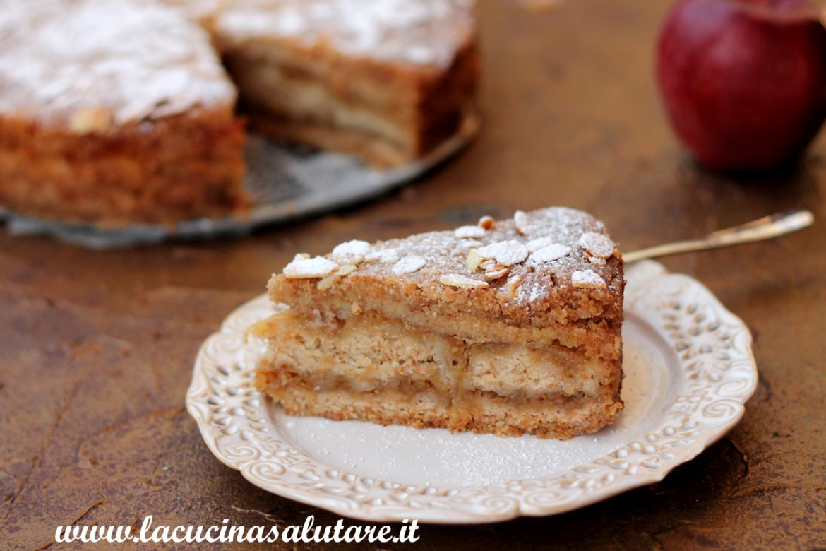Torta di mele facile, veloce, senza lattosio, vegana e molto gustosa. Mi avete chiesto in tanti una ricetta vegana per un dolce ed eccola qui! La ricetta deriva dalla Polonia e mi ha incuriosito molto il procedimento insolito. Per preparare questa torta non si usa né mixer né sbattitore, ma si uniscono gli ingredienti direttamente nella tortiera. Gli strati si amalgamano durante la cottura… incredibile? Incredibile è che la torta sia davvero buona e si presenti molto bene. La versione originale è molto più pesante perché si utilizza il burro al posto dell’olio, la farina 00 e lo zucchero. Dovete assolutamente provarla! Una porzione contiene circa 250 kcal. Guardate anche la ricetta per torta di corn flakes e mele.