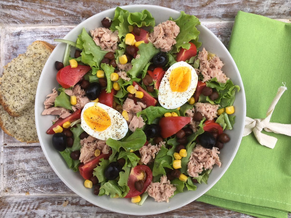 Insalata di tonno, ceci neri e uova. E’ sostanziosa e semplice, non richiede molto tempo per la preparazione e soprattutto è molto buona. Potete prepararla per un pranzo o una cena leggera, o metterla nella vostra schiscetta e mangiarla in ufficio. I ceci neri li potete sostituire con quelli tradizionali o oppure con i fagioli rossi. Guardate anche la ricetta per Insalata di tonno e mais. e Insalata di tonno, uovo sodo e avocado.