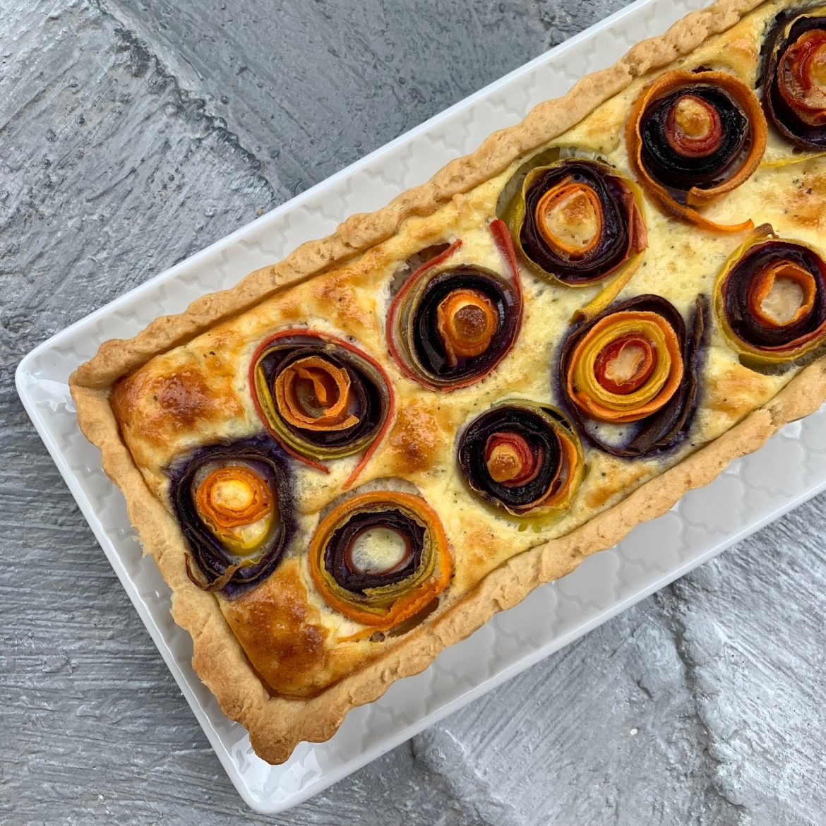 Torta salata con carote preparata con la pasta brisè. Leggera, gustosa e piena di colori. L’ho preparata con le carote di diversi colori, ma per il ripieno potete anche aggiungere zucchine (verdi, gialli), cipolla rossa, datterini, ecc. E’ perfetta come piatto unico per pranzo o per una cena autunnale.
