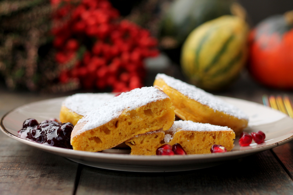 Sofficissimi pancakes preparati con lievito di birra che hanno il sapore dei classici bomboloni. Molto popolari nella cucina polacca dove si chiamano “racuchy”, amati dai bambini, di solito li si prepara per merenda o per colazione. All’impasto si può aggiungere pezzi di mela o pera, uva sultanina o mirtilli secchi. La preparazione è un po’ lunga per i tempi della lievitazione, ma ne vale veramente la pena. Potete servirli insieme alla frutta fresca, cosparsi con lo zucchero a velo, ma anche con varie confetture e polpe di frutta. In tutte le versioni sono veramente buonissimi.