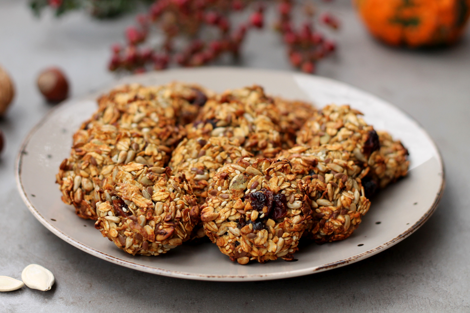 Biscotti vegani, nutrienti e leggeri, preparati solo con ingredienti naturali: semi, nocciole e fiocchi d’avena. Niente farina, niente burro o olio, solo tanta bontà e croccantezza per una pausa sana e piena di energia.