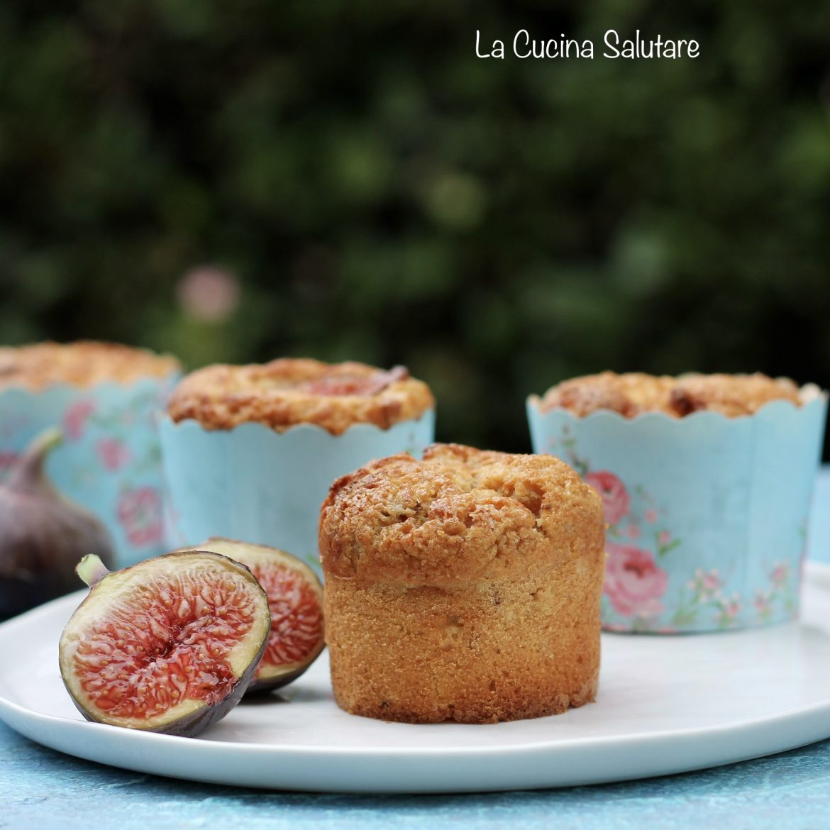 Tutti gli ingredienti devono essere a temperatura ambiente. Lavate i fichi e tagliateli a dadini piccoli (io ho lasciato la buccia, ma va a piacere). In una ciotola mischiate gli ingredienti secchi, ossia le farine e il lievito. In un'altra ciotola mescolate le uova con lo yogurt e l'olio. Unite i contenuti delle due ciotole, aggiungete i pezzettini di fichi e mescolate brevemente con una spatola. Versate il composto ottenuto all'interno degli stampi rivestiti con i pirottini riempiendoli fino a 3/4. Cuocete in forno riscaldato a 180 gradi per circa 20-25 minuti. *se vi piace una crosta croccante sui muffin, prima di infornare li potete cospargere con lo zucchero di canna