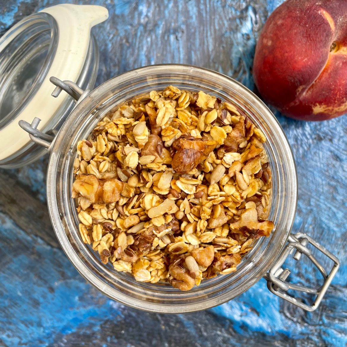 La granola alla pesca che vi propongo oggi è un ottimo modo per utilizzare le pesche troppo mature. È facilissima e veloce da preparare, sana e davvero buonissima.