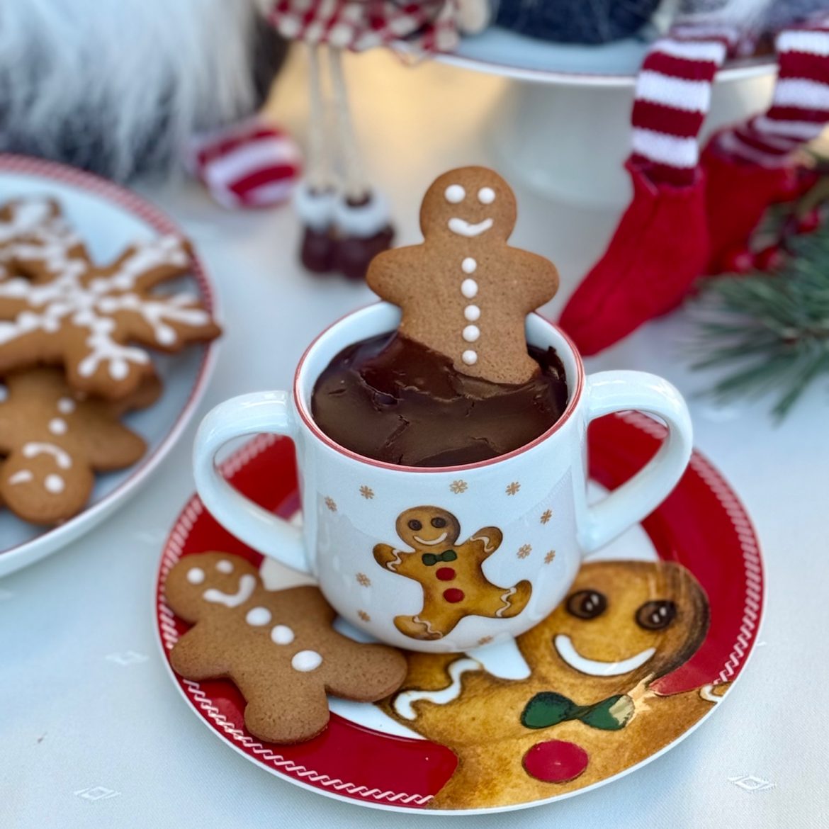 Dicembre… il tempo delle bevande calde e avvolgenti e dei biscotti speziati. La cioccolata calda è una coccola golosa per riscaldarsi e dedicarsi un momento di piacere. Vi propongo una mia versione leggera, senza lattosio e senza glutine (a condizione di utilizzare prodotti certificati). È buonissima da sola, ma anche per inzuppare un biscotto speziato. Tazzina e piatti: Weissestal.