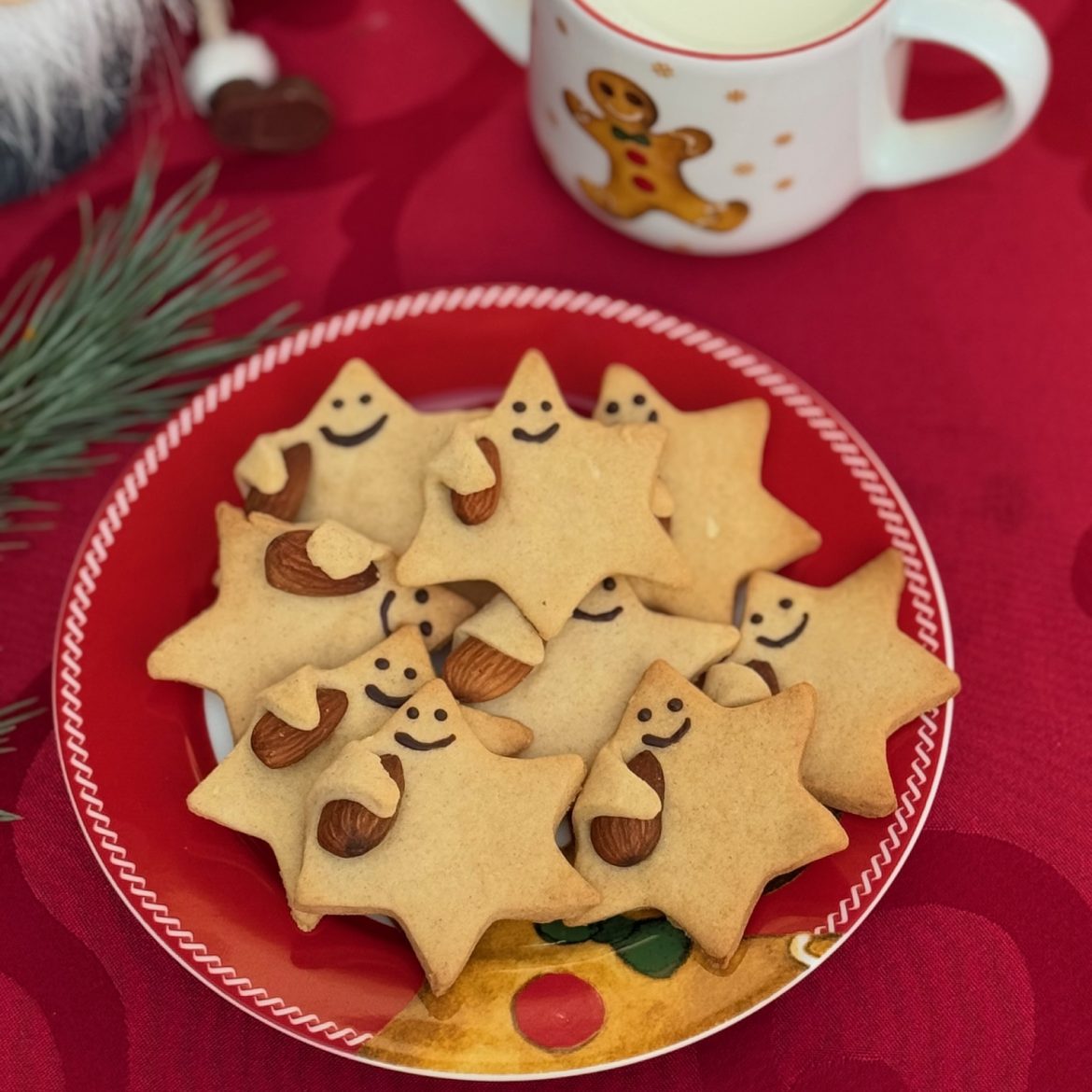 I biscotti di Natale nella versione più leggera (che è anche senza lattosio) e molto simpatica. Al posto delle mandorle potete utilizzare un’altra frutta secca, oppure una decorazione di zucchero. Buonissimi con una tazza di latte o un cappuccino.