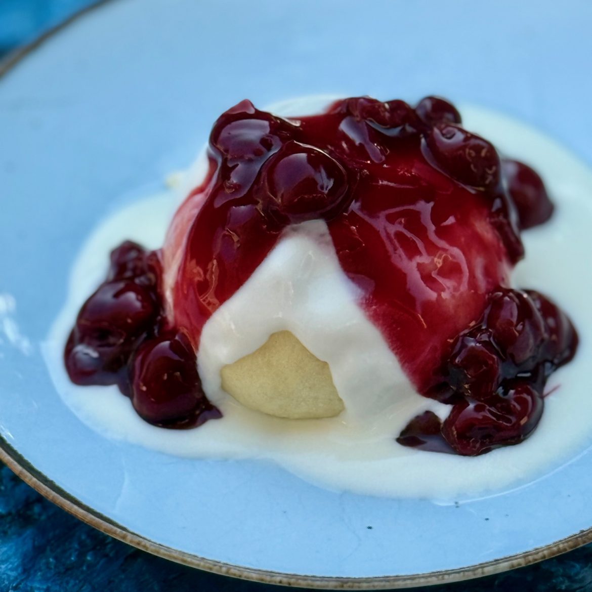 I “pampuchy”, oppure “pyzy” polacchi, sono un tipo di gnocchi fatti con un impasto lievitato (come per i panini) e possono essere serviti sia dolci che salati. Nella versione salata si servono, di solito, con la carne e rigorosamente con le salse: al pomodoro, ai funghi, alla cacciatora, ecc.. Nella versione dolce sono buonissimi con le confetture, le composte di fragole o di frutti di bosco, con la frutta fresca e con i coulis (la salsa alla frutta). Si caritterizzano per la loro consistenza morbida e molto soffice e per il fatto di essere cotti al vapore. Io li ho serviti con yogurt bianco e la salsa alle amarene.